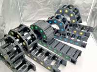 一、 基本定义 拖链,又称电缆保护链、坦克链,是一种用于有序容纳和保护移动设备(如机床、机器人)上的电缆、油管、气管等柔性管线,并引导其跟随设备进行往复移动的机械装置。其外观由众多单元链节通过铰接连接而成,形似坦克的履带,因此得名。 二、 主要结构与类型 结构单元:通常由链节(分为左右侧板、上下盖板)、铰接轴(连接链节使其可转动)和分隔片(内部将空间分隔成不同区域,以便分类铺设管线)组成。 主要类型: 按材质分类: 塑料拖链:常用材料有尼龙(PA)、聚丙烯(PP)等。具有重量轻、噪音小、耐腐蚀、绝缘、成本较低等特点,适用于一般工业环境。 钢制拖链:由不锈钢或铝合金等金属制成。具有更高的强度、耐高温、耐重载和抗强外力冲击的能力,适用于重型机械、冶金等恶劣工况。 按结构分类: 桥式拖链:链节间为桥式连接,开口较大,便于穿线和维修,是最常见的形式。 全封闭拖链:链节完全封闭,对管线提供最高级别的保护,能有效防尘、防水、防切屑。 三、 核心功能与作用 保护功能:将松散的管线约束在链腔内,防止其在移动中相互缠绕、磨损、拉脱,并抵御外界油污、冷却液、金属切屑、粉尘等的侵蚀与机械损伤。 引导与延长寿命:通过拖链的弯曲半径引导管线在预定轨迹上做匀速往复运动,避免急弯和应力集中,从而显著延长电缆等管线的使用寿命。 有序管理:利用分隔片将动力电缆、控制线缆、软管等分类固定,使设备布局整洁、美观,便于安装、维护和故障排查。 安全保障:防止因管线磨损短路引发的火灾或设备故障,提升整个运动系统的安全性与可靠性。 四、 应用领域 拖链是自动化设备中不可或缺的关键部件,广泛应用于: 数控机床(CNC)、加工中心 工业机器人、机械手 自动化物流系统(如堆垛机) 注塑机 起重运输设备 门窗测试机等需要精密往复运动的场合。 五、 选型关键参数 在选用拖链时,主要需考虑: 内高/内宽:根据所需容纳的电缆/软管的直径和数量确定内部尺寸。 弯曲半径:拖链固定弯曲的半径,需大于电缆允许的最小弯曲半径,是影响管线寿命的关键参数。 填充重量与速度:根据管内电缆/软管的总重量和移动速度选择相应承载能力的拖链。 使用环境:根据温度、耐油性、耐化学性、阻燃要求等选择合适材质。 行程长度:决定拖链的长度和支撑方式(如使用滑槽或滚轮)。 |